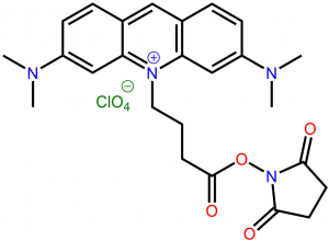 Amine-reactive NHS-ester with a fluorescent 3,6-acridinediamine connected via C4 ɣ-butyrate linker. Readily reacts with amino-groups of proteins or other biomolecules.